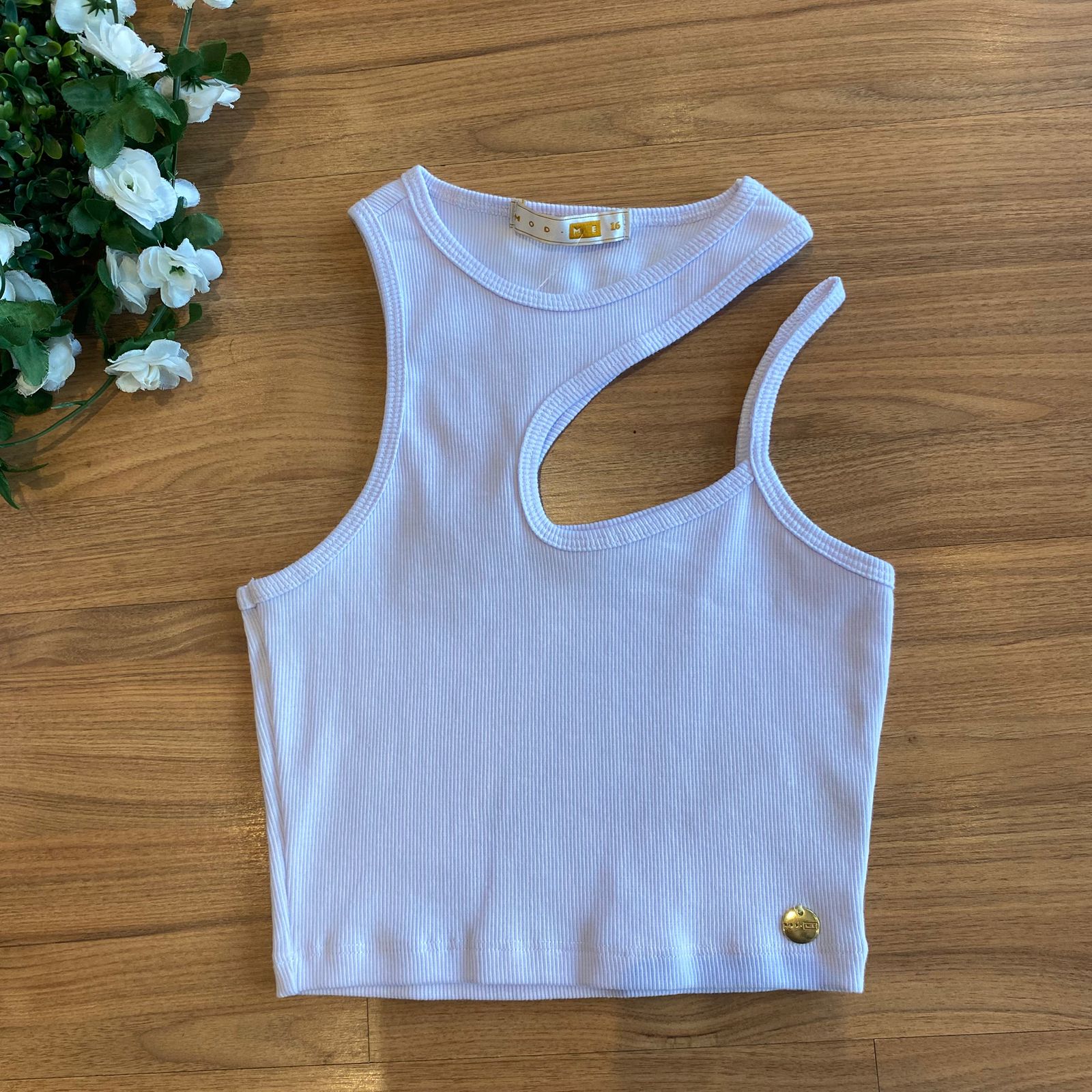 Top Cropped Angerô - Detalhe com alça dupla e recorte no ombro esquerdo trazendo modernidade para a peça.